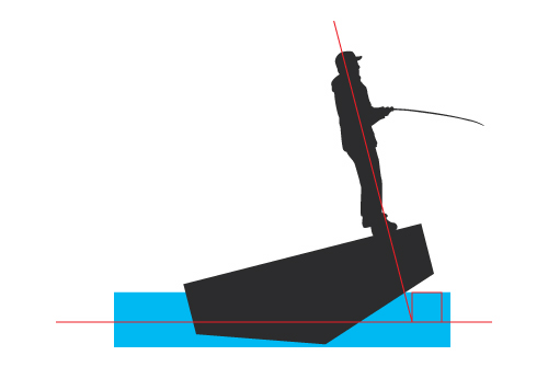 波がない時は、以下の図のように水面に対して垂直にラインが入ります。(少しは波や風で揺れますが、ほぼ垂直です)