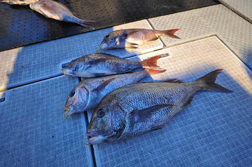 最終日はさらに厳しくお昼過ぎにやっと真鯛が1枚上がる。
